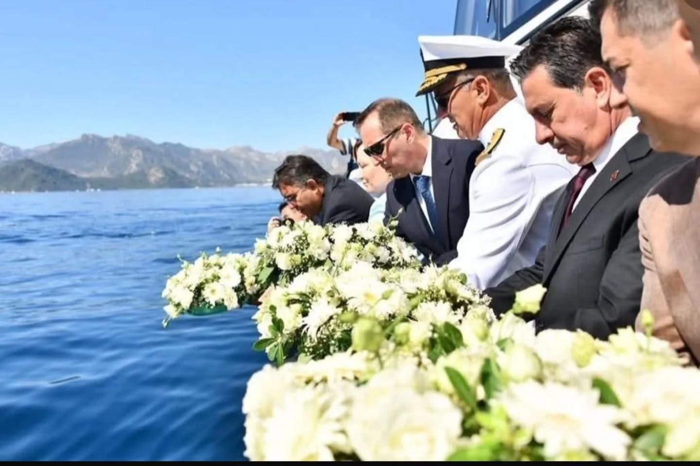 1 Temmuz Denizcilik ve Kabotaj Bayramı etkinlikleri kapsamında programın 2. kısmı olarak düzenlenen deniz töreni, Marmaris Limanı’ndan hareket eden teknenin denize açılmasıyla devam etti ve ilçemizin protokol üyeleri deniz şehitlerini anmak amacıyla denize çelenk bıraktı. Törene; Marmaris Cumhuriyet Başsavcısı Sayın Fatmagül YÖRÜK, Aksaz Deniz Üs Komutanı Tuğamiral Neslim ESKİ, Muğla Büyükşehir Belediye Başkanı Ahmet ARAS, Marmaris Belediye Başkanı Acar ÜNLÜ, Marmaris Bölge Liman Başkanı Eray AYKANAT'ın yanısıra Odamızı temsilen İMEAK Deniz Ticaret Odası Marmaris Şubesi Yönetim Kurulu Başkanımız Halil BAĞLI, Şube Meclis Başkanımız Ozan BALCI, Şube Yönetim Kurulu Başkan Yardımcımız Mehmet POYRAZ, Merkez Meclis Üyemiz Coşkun CENGİZ, Şube Meclis Üyemiz Burak ŞENEL, Şube Müdür Vekilimiz Ceyda BAZAYIT, Şube Sorumlumuz Barış EMİRALİOĞLU, belediye yetkilileri, sivil toplum kuruluşları ve vatandaşlar katıldı.